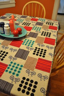 I finally finished the table cloth that goes along with the couch pillow I made earlier this fall. I could not sleep this morning, so I got up and fed the animals and had this done before 8 am. Eric had a nice surprise of bicycles with his breakfast this morning.