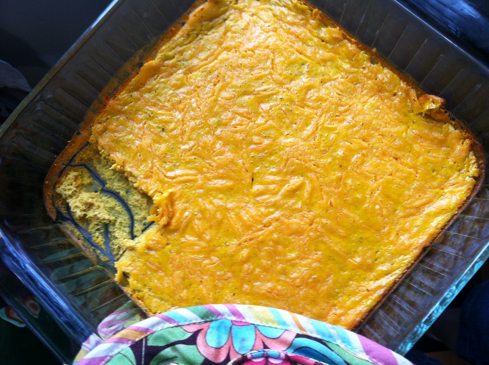 2. Pour egg mixture into prepared baking dish and sprinkle with cheese. Bake in preheated oven until eggs are puffed and set, about 35 minutes. Let cool slightly. Cut into bite-sized pieces and serve. Makes 4 servings.