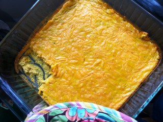Preheat oven to 325. Prepare 8 inch square glass baking dish with brushed vegetable oil.