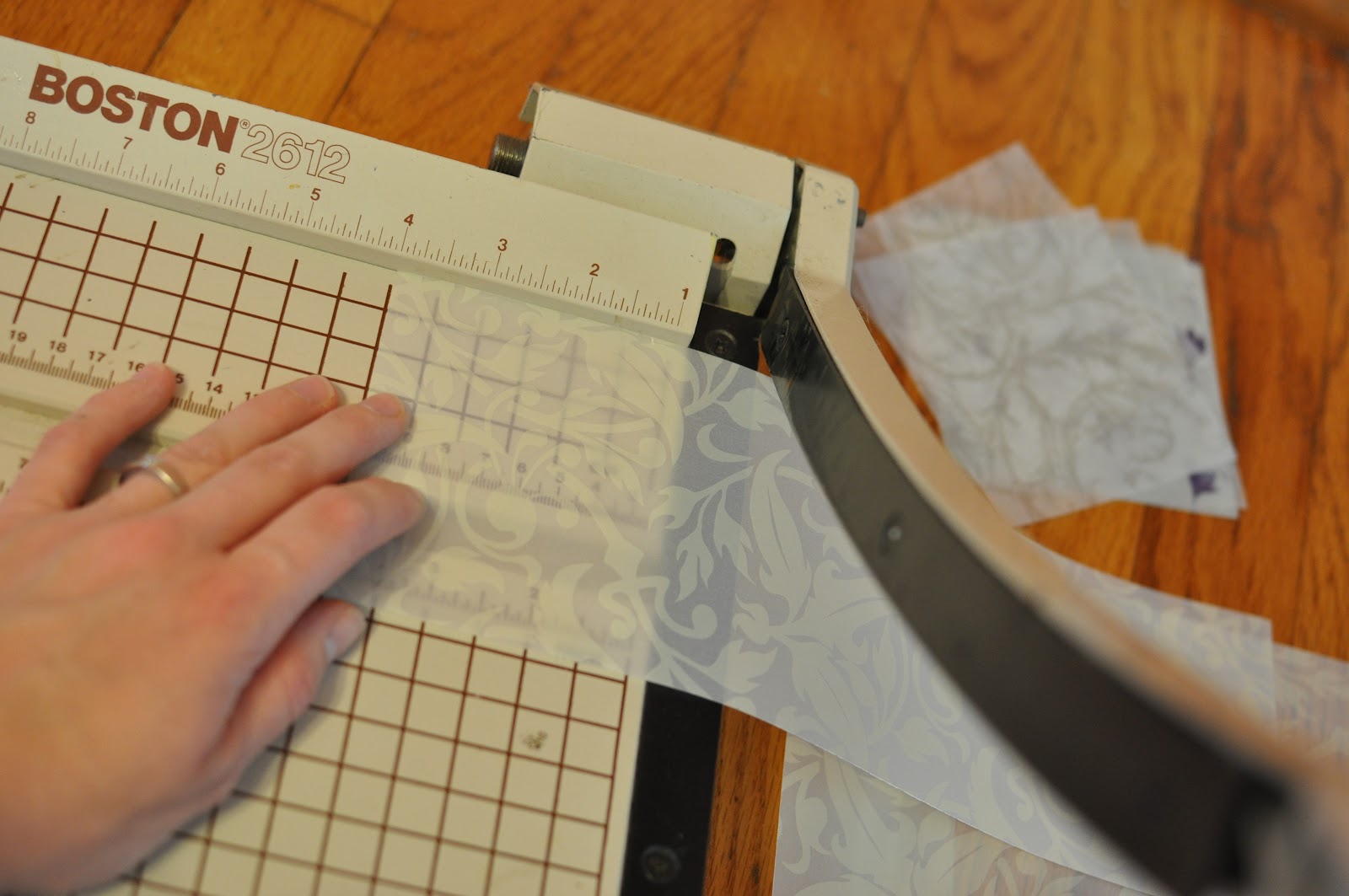 I cut my vellum into 4 x 4 inch squares using a paper cutter. A paper cutter is a must-have for the amount of paper cutting I do. I am simply too sloppy and rushed most of the time to cut things by hand.