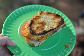 - Let the coals get low enough that you won’t burn your sandwich and even then, watch the grill closely! We had only one butter fire.