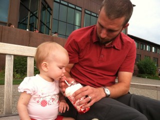 Greta enjoyed an after-dinner strawberry milkshake from the Lodge’s Grill. I enjoyed the views of my two as well as this view from our bench:
