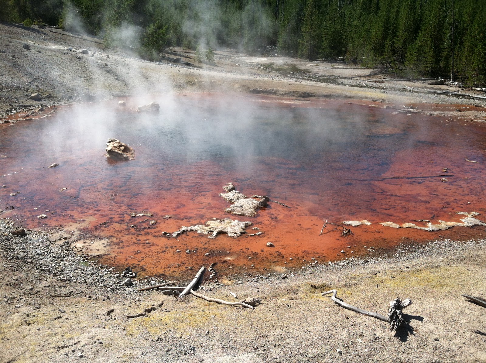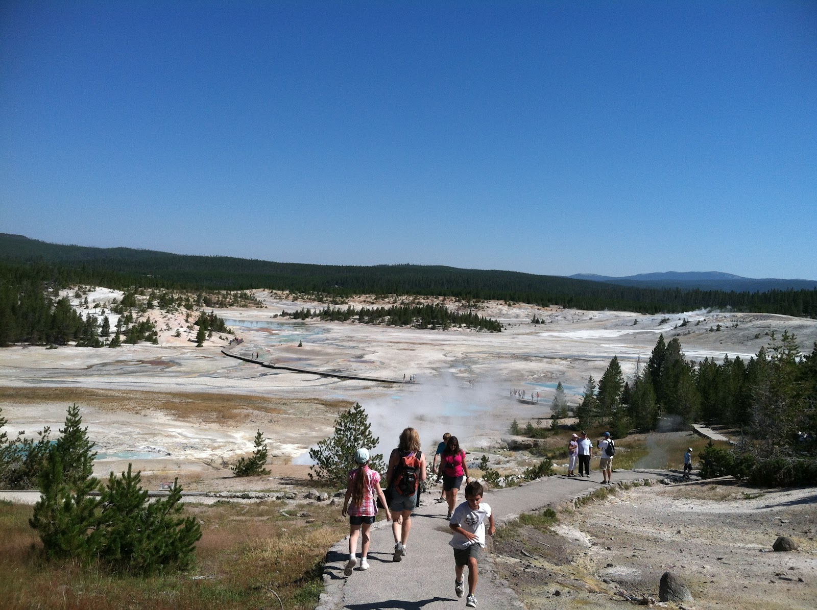 We stopped at Norris Geyser Basin, next. This is a large area with many thermal attractions. It is a very popular stopping point, so getting there early is key. Parking can be quite the problem later in the day. The boardwalks and paths take you through some very interesting thermal features.