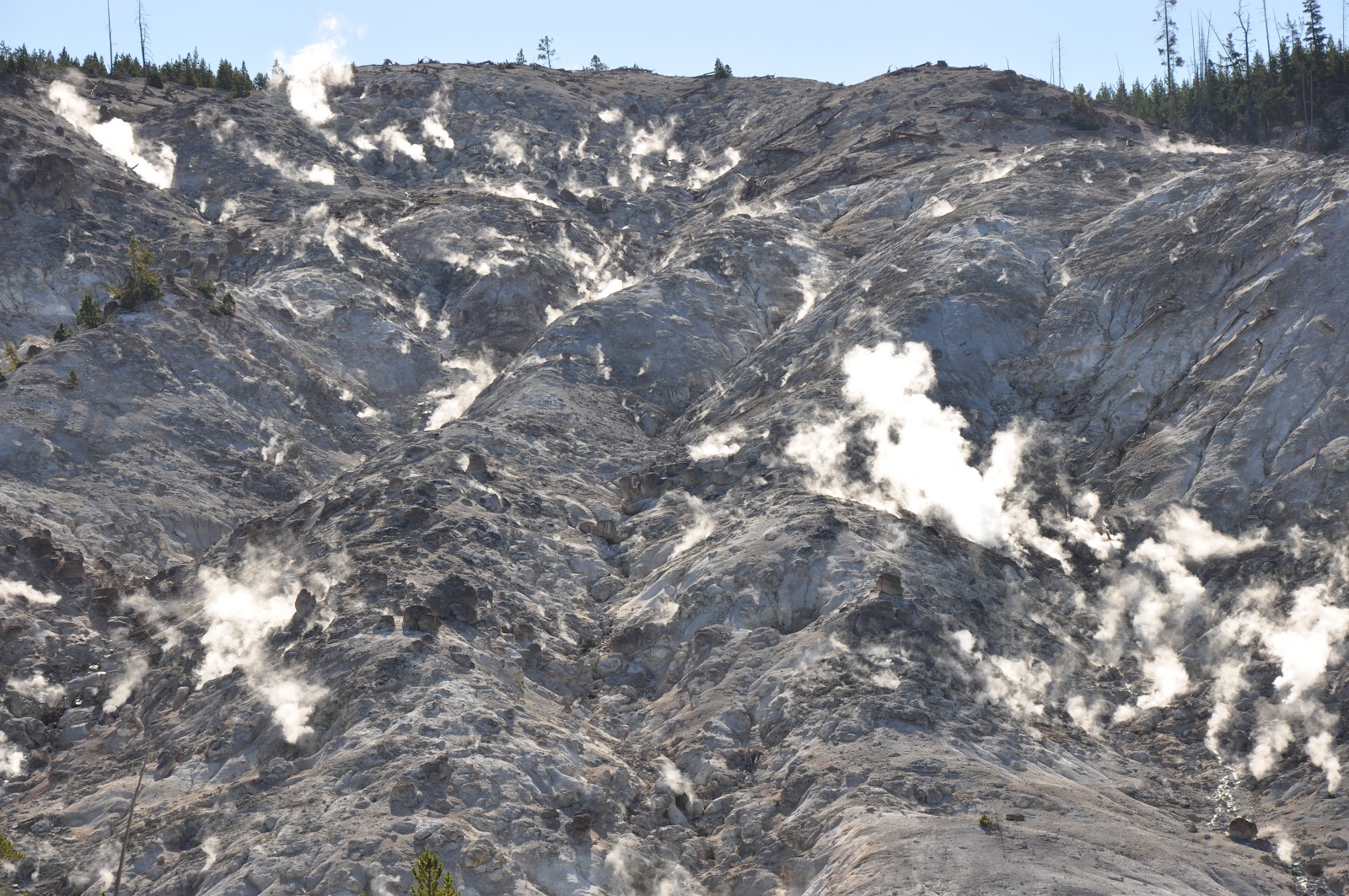First we saw Roaring Mountain. This thermal feature is an entire mountain side covered in steaming vents.