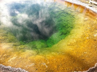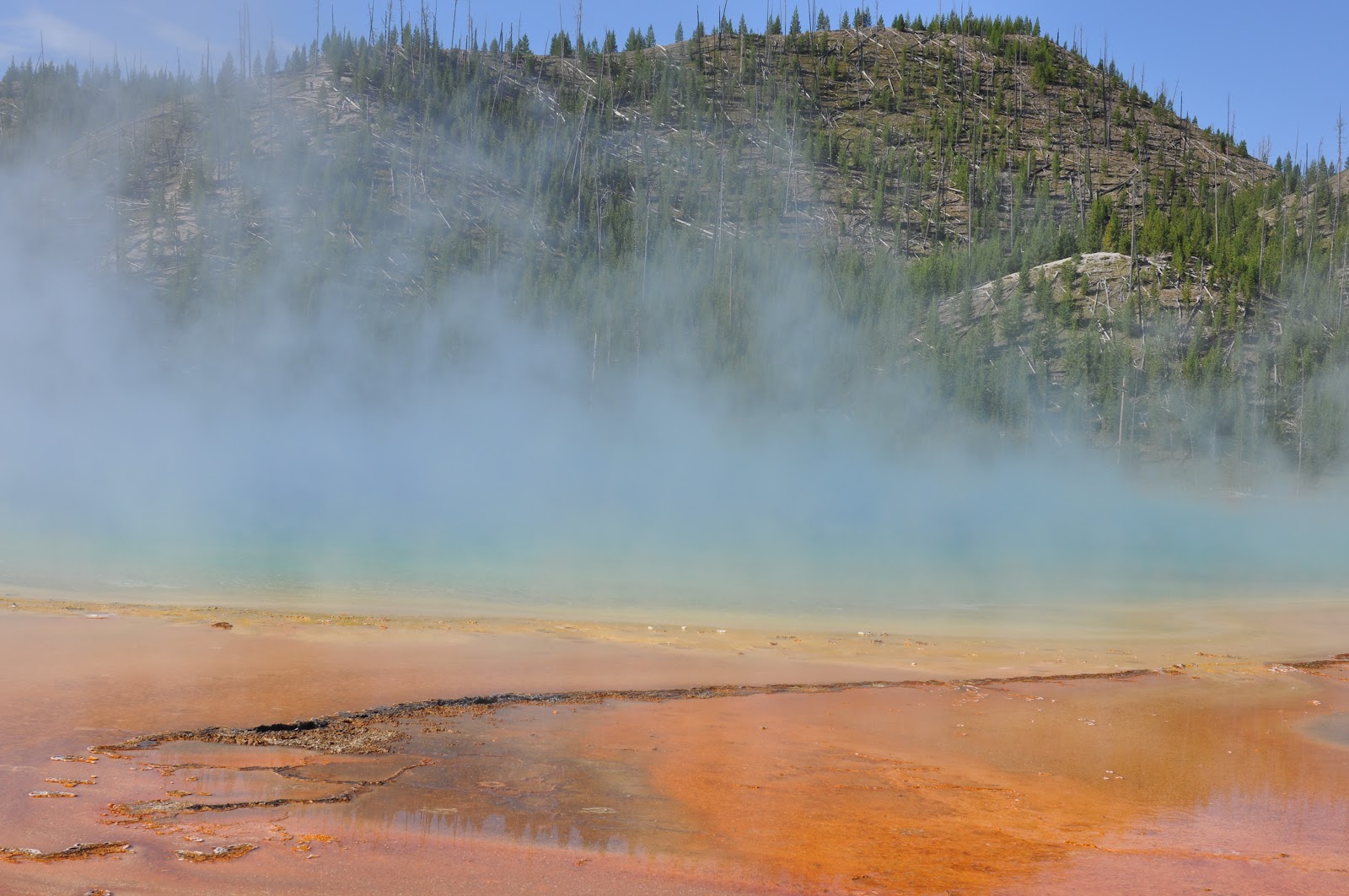 The early morning steam actually impeded our views of some of the pools. The size of Midway basin is larger than that of many other features – the hot pools are on a massive scale.