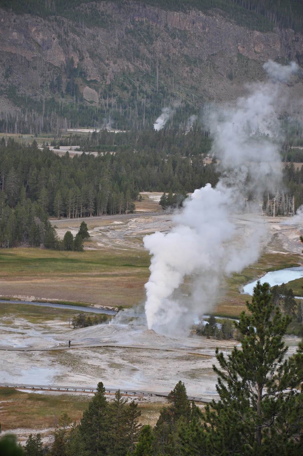 We got early the first morning at Old Faithful and hiked to the top of the Observation Point. It commanded a wide view of Old Faithful Inn, the geyser basin, and Old Faithful Geyser.