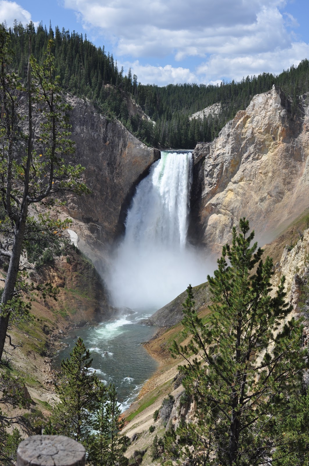 Lower Falls is 308 feet tall and twice the height of Niagara Falls. During peak water run-off it can expel 63, 500 gallons of water per second. Eric’s view and my view.