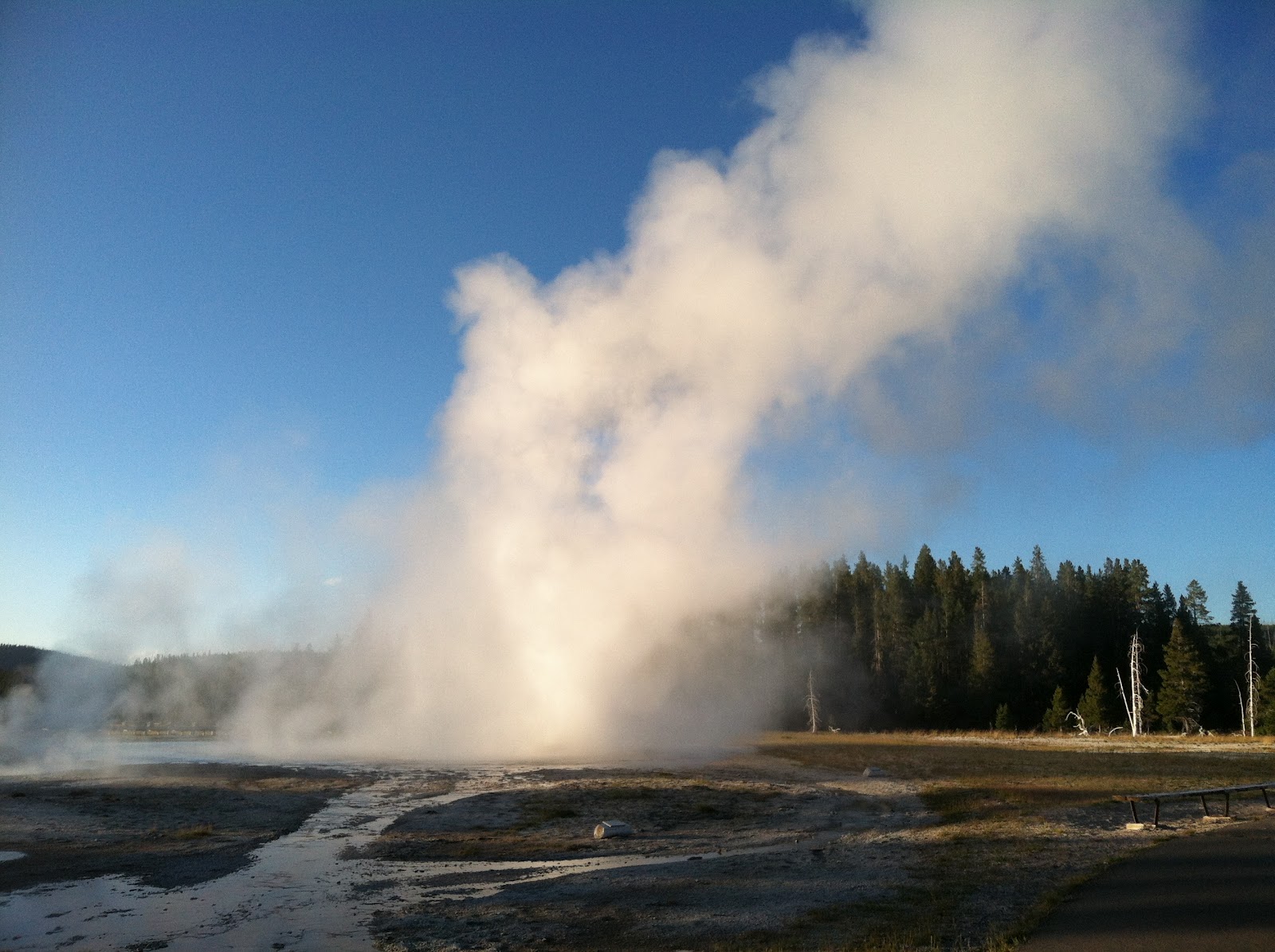 Old Faithful Geyser was warming up for an eruption. We didn’t last long enough though, breakfast was calling.