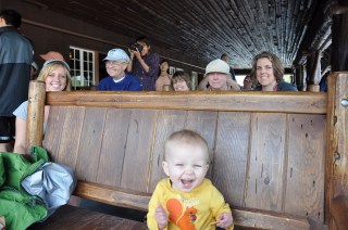 After our views of Lower Falls, we headed back to the Inn. Again, we were just in time for Old Faithful’s eruption. The best location to watch Old Faithful is from the second floor viewing deck in the Inn. You have access to lovely benches, tables, and a second floor lobby with tables and its own bar. We met up with my dad’s brother, Dick and his daughter, Molly on our last night at in Yellowstone.