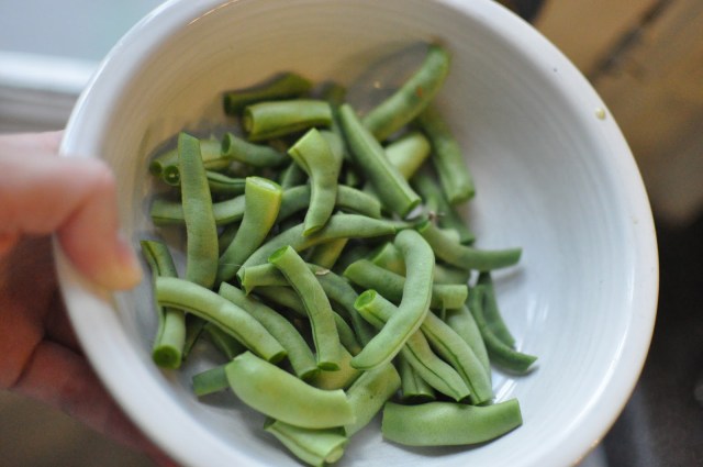 I added the sliced green beans to the pan next.