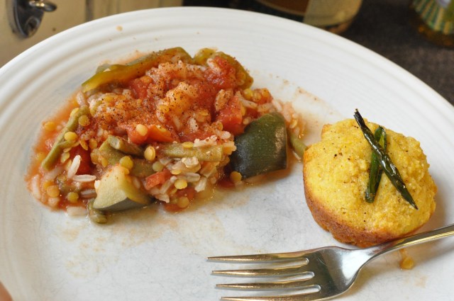 Mix in 1 cup cooked rice. Serve with Sweet & Spicy Corn Muffins.