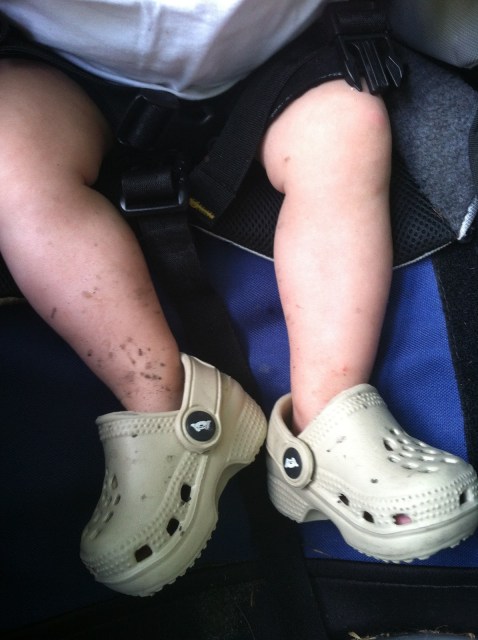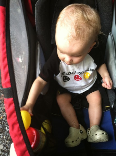 Greta tried to stay entertained with her plastic Easter eggs. In and out of the side pockets. Repeat.