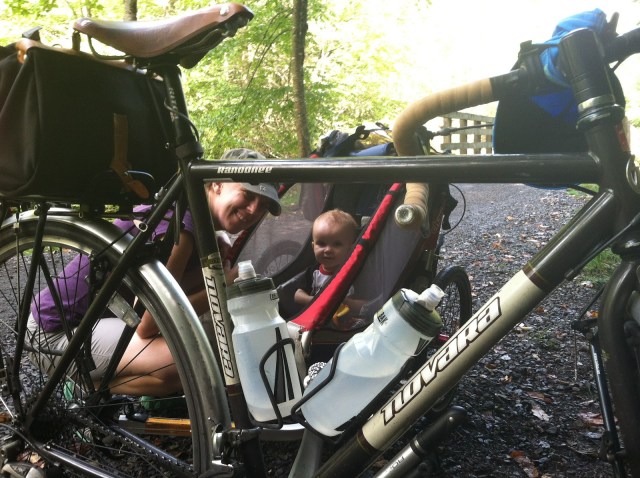 After an hour and a half of riding Greta needed a snack. We stopped near a nice bridge to feed her.