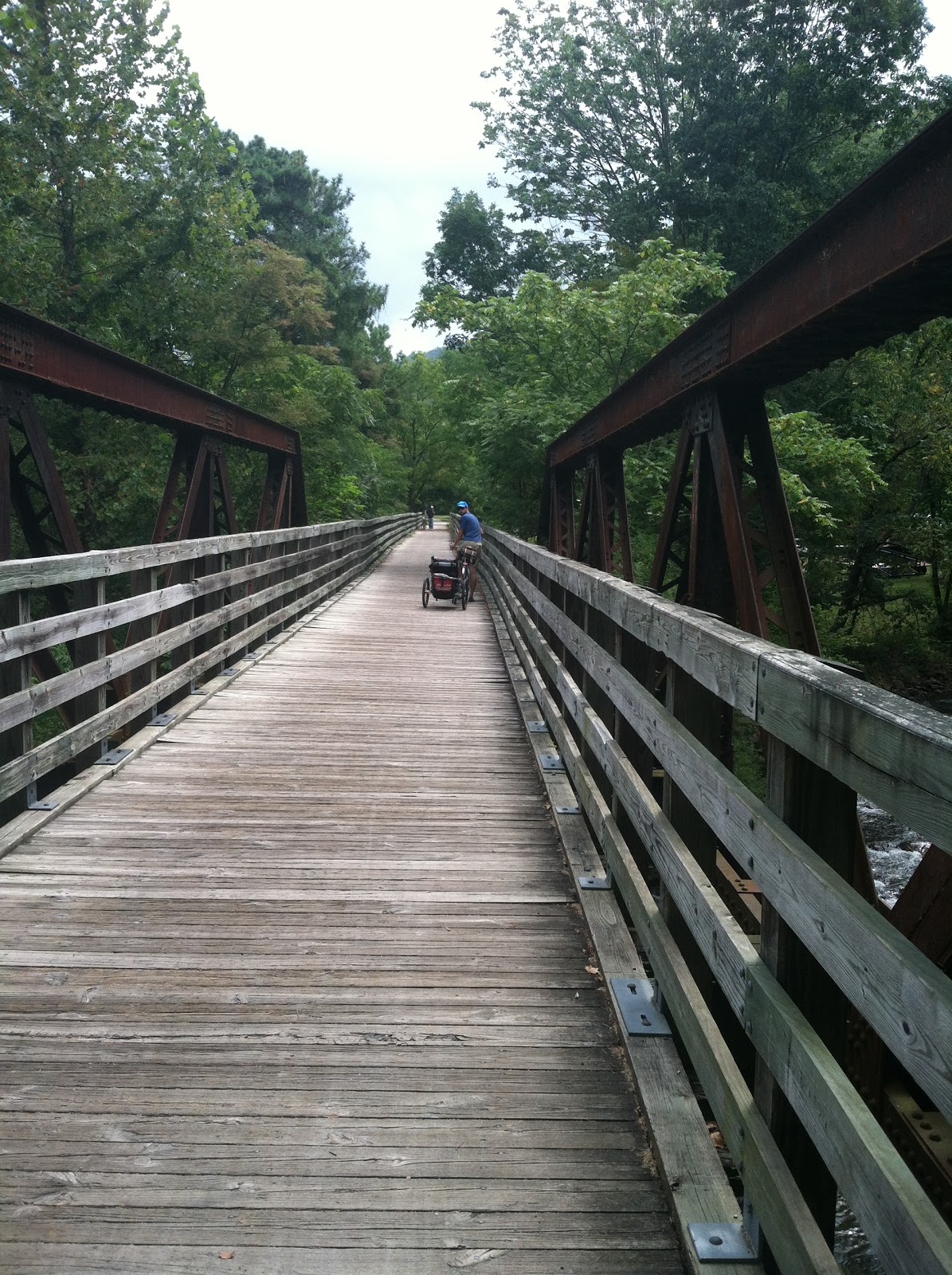 Overall it was a beautiful ride. If you ride from Damascus toward Whitetop Station as we did, be prepared for constant pedaling due to the slight incline. Also note that most of the people who ride this trail take a shuttle to the top and ride down. Think lowest common denominator of riding. Granted this was a busy weekend, more so than normal, but I was nervous about the crowds and groups barreling downhill 2 and 3 abreast. At one point I actually feared for my life as a teenage boy almost ran me off the trail because he failed to move to the right or slow down. For bike snobs, think Disneyland on bikes. Next time, I resolve to stay overnight and leave early, before the shuttles head out.