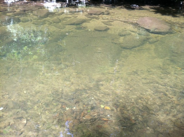 The river was full of good-sized trout that were easily seen from the bank. We saw quite a few people biking with their fishing poles.