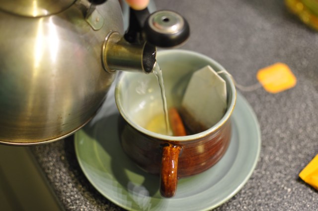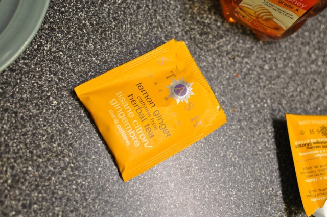 Place 1 bag of lemon ginger herbal tea in a cup. I used the brand Stash, but really any citrusy or ginger tea will work.