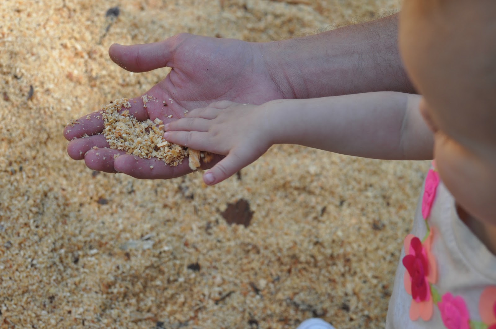 Eric and Greta were enthralled with the demo and the gigantic sawdust pile.