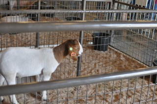Meat goats were entertaining – this one kept trying to eat the banner hanging behind its pen.