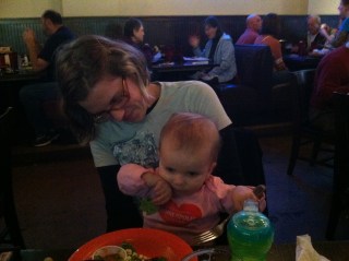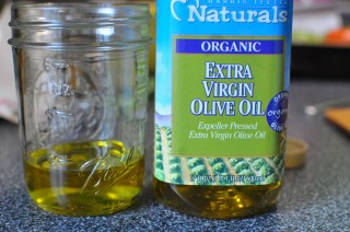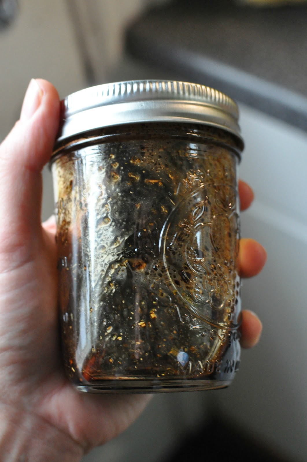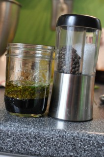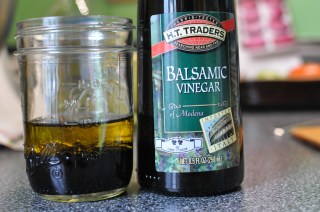 This recipe came about after discovering that Greta really enjoys balsamic vinegar. She devoured all the feta cheese out of a spinach salad and then proceeded to stick her fork in the dressing cup repeatedly. See below for the struggle for the fork.