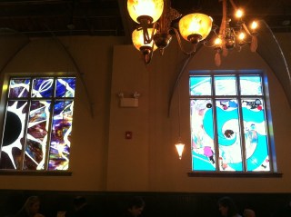 Mellow Mushroom has a great ambiance, deliciously different pizzas, great local draughts, and these amazing stain glass windows.