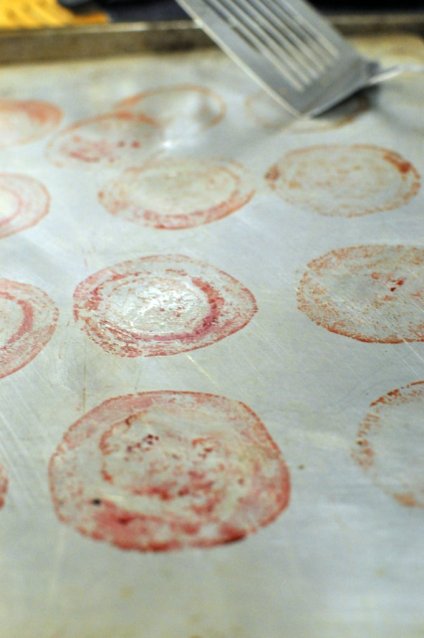 Spread onto a baking sheet, cover with a second baking sheet. Bake in a 350 degree oven for 20 minutes, or until edges begin to dry and curl.