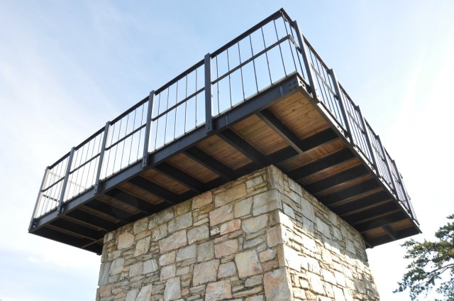 The views are rewarding. This shows Pilot Mountain which is currently burning due to a controlled burn that got out of hand. We could see some of the smoke, but could not smell the fire at all. While we did not see all that many people on the trail, the watch tower was more crowded than usual – most likely due to the closure of nearby Pilot Mountain.