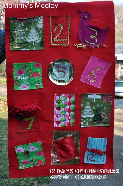 My mom chimed in with yet another idea, why no do the 12 Days of Christmas to change up the idea of an advent calendar? So I made one traditional advent calendar and 1 non-traditional 12 Days of Christmas calendar.