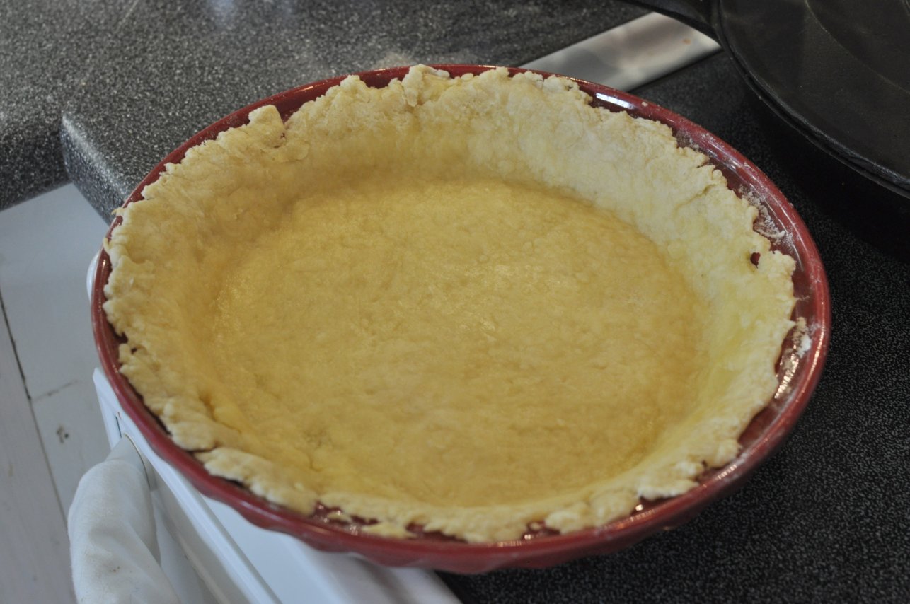 The baked pie crust, golden and ready for the quiche filling.