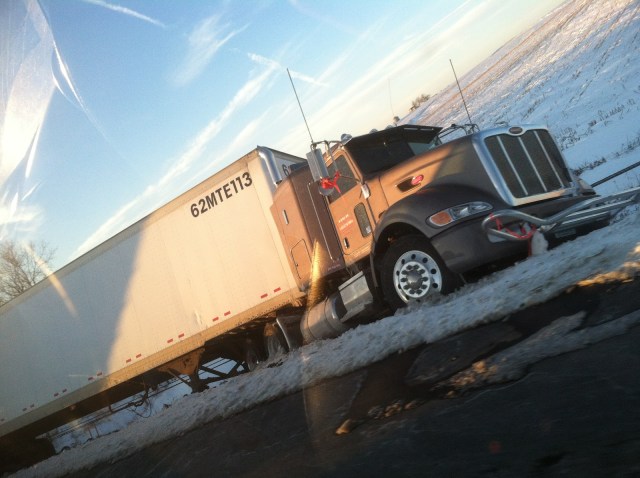 The semis stuck in the snow were a frightening reminder of winter driving.