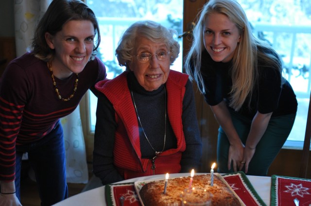 My grandmother’s birthday is Christmas Day. As kids, we would drive to Minneapolis to celebrate with her on Christmas Day. We have started celebrating it on Christmas Eve now that she lives in Des Moines. This year, I decided to use this cake recipe since her nickname is Honey and a Christmas birthday is often overlooked and cake left out completely.