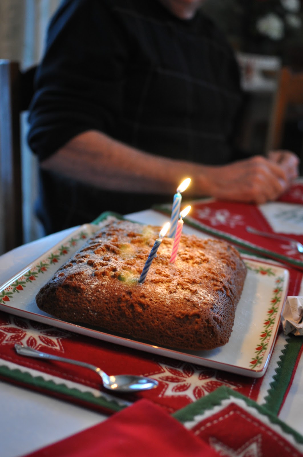 A dusting of confectioner’s sugar and a pretty festive platter made this the perfect Christmas birthday dessert.