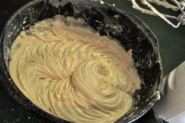 1. Cream together 1/2 cup butter and 1/2 cup sugar. Add 2 eggs and continue creaming until light and fluffy.