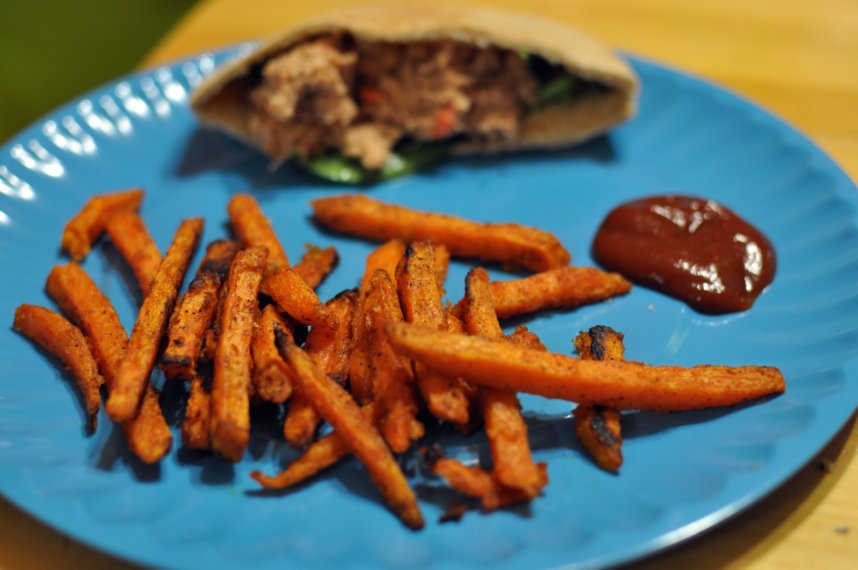 While I was leisurely making tuna salad I had some Alexia Sweet Potato Fries with Chipotle baking in the oven. These bad boys are so good. Who wants to make sweet potato fries when you can buy these?