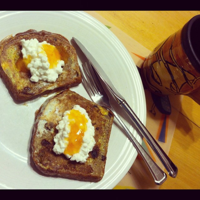 Good breakfast’s galore. We have had some tasty breakfasts lately. This one was my most recent favorite – cinnamon raisin french toast with cottage cheese and apricot jam on the top. You have to try this!