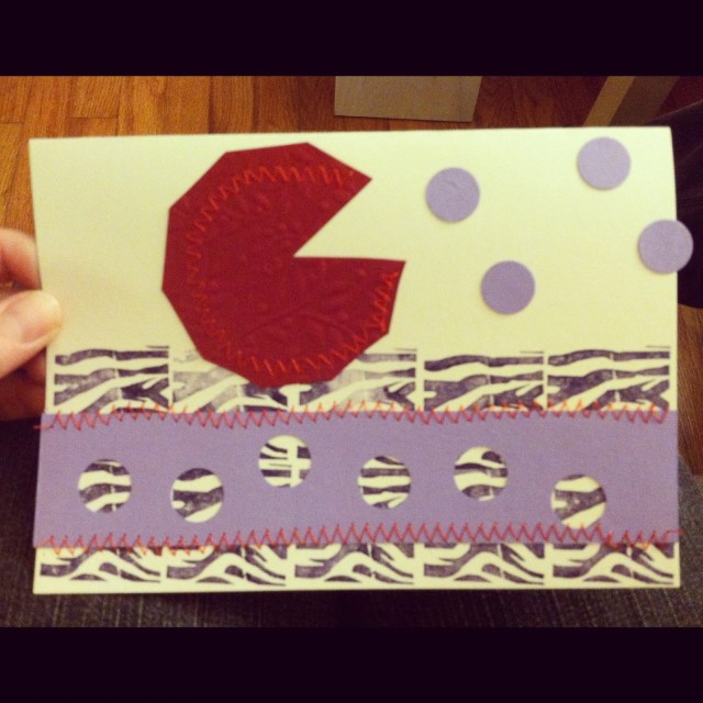 More Valentine’s Day cards are rolling out this week. This year I decided to combine my love of collage and sewing and go for the sewn paper technique. I have been loving it – the quickness of stitching the paper allows for a faster pace than my typical glue or glue stick method. More of these to come later on.