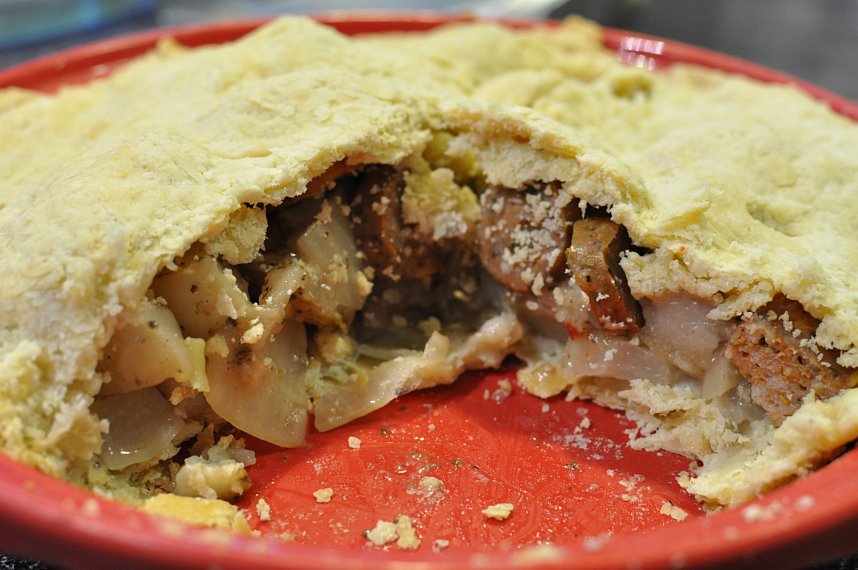 This flaky crust, the roasted veggies, the savory flavor of sage mixed with the tang of vinegar. How are you not licking your screen right now? This pie would be just as good with the sausage omitted – still not vegan though. I cannot do the butter-free crusts – they just aren’t as good.