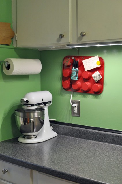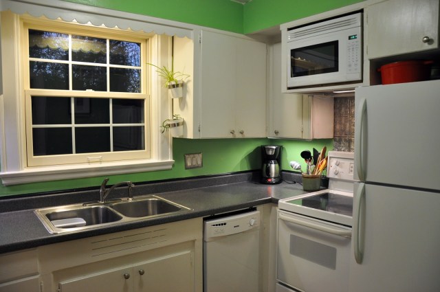 The kitchen was already looking larger. We ordered a new microwave that would fit perfectly above the stove, complete with a light and fan built in. The size of our oven and microwave are 24.”
