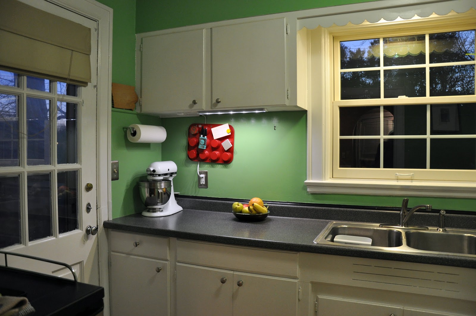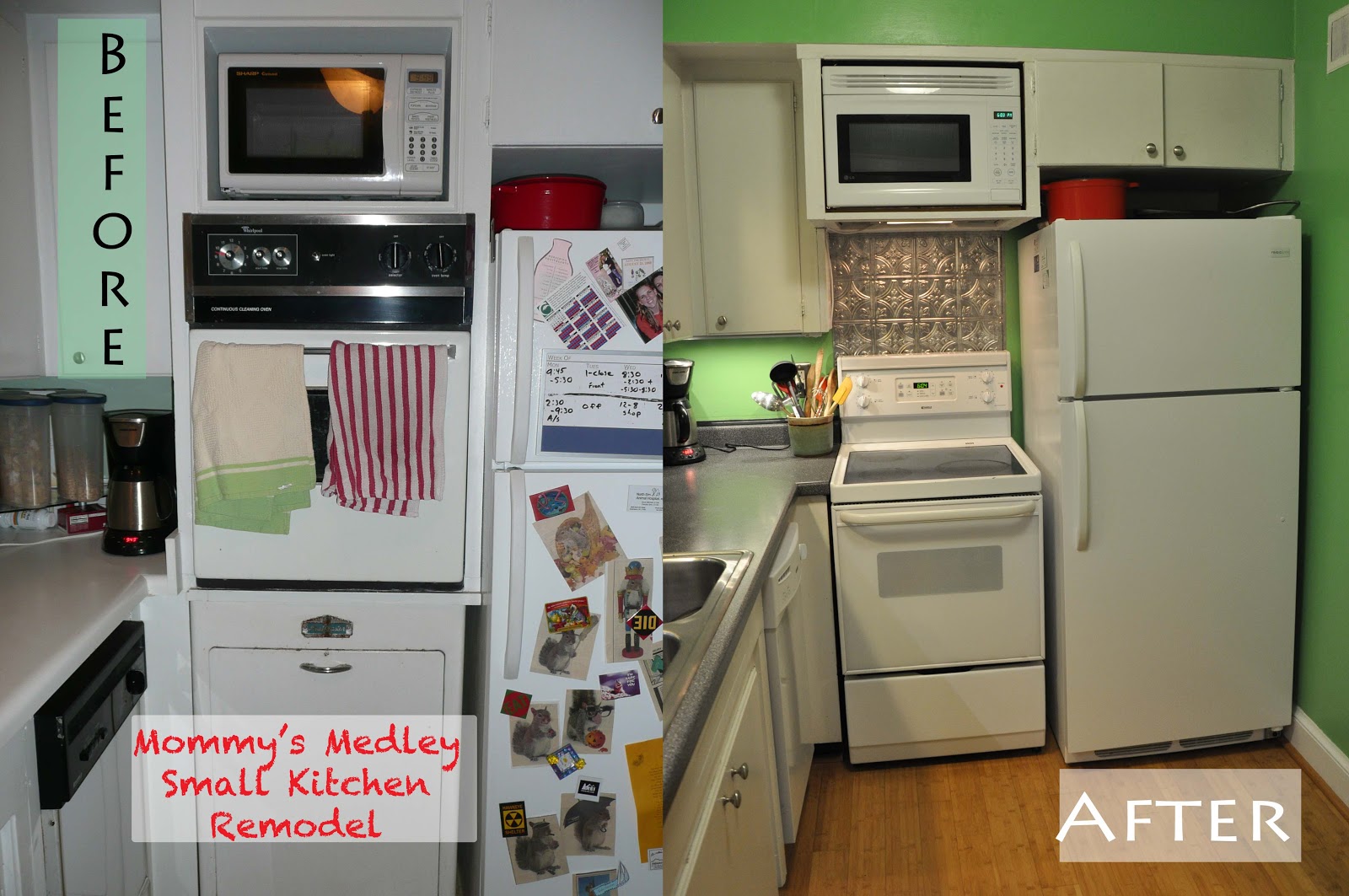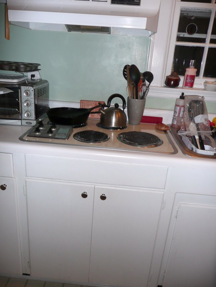 The kitchen was already looking larger. We ordered a new microwave that would fit perfectly above the stove, complete with a light and fan built in. The size of our oven and microwave are 24.”
