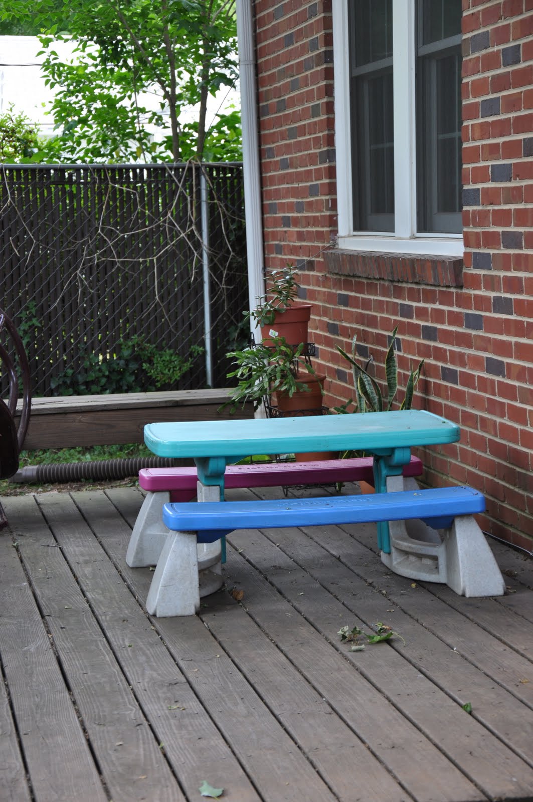 We found a perfectly good picnic table at the curb(!) on trash day and brought it home. Once we cleaned it up, we realized it was perfect for Greta’s art room.