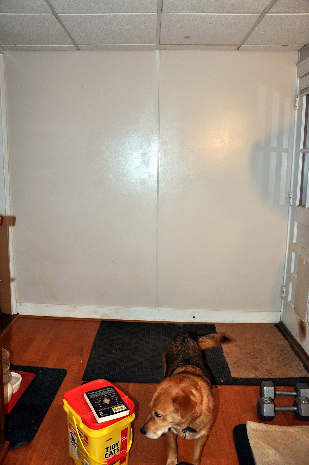 This room makeover took place this past summer, because I decided to make more room for Greta and her artistic endeavors. It’s amazing how having kids shifts your entire life. I always heard people talk about this – but it is never fully realized until it happens to you. So, I moved a lot of my things out – too much clutter hurts creativity anyway – and rearranged Brownie’s things. This is the wall soon to be graced with chalk drawings. Can you see the red North Carolina dirt? That was going to be cleaned and repainted as well.