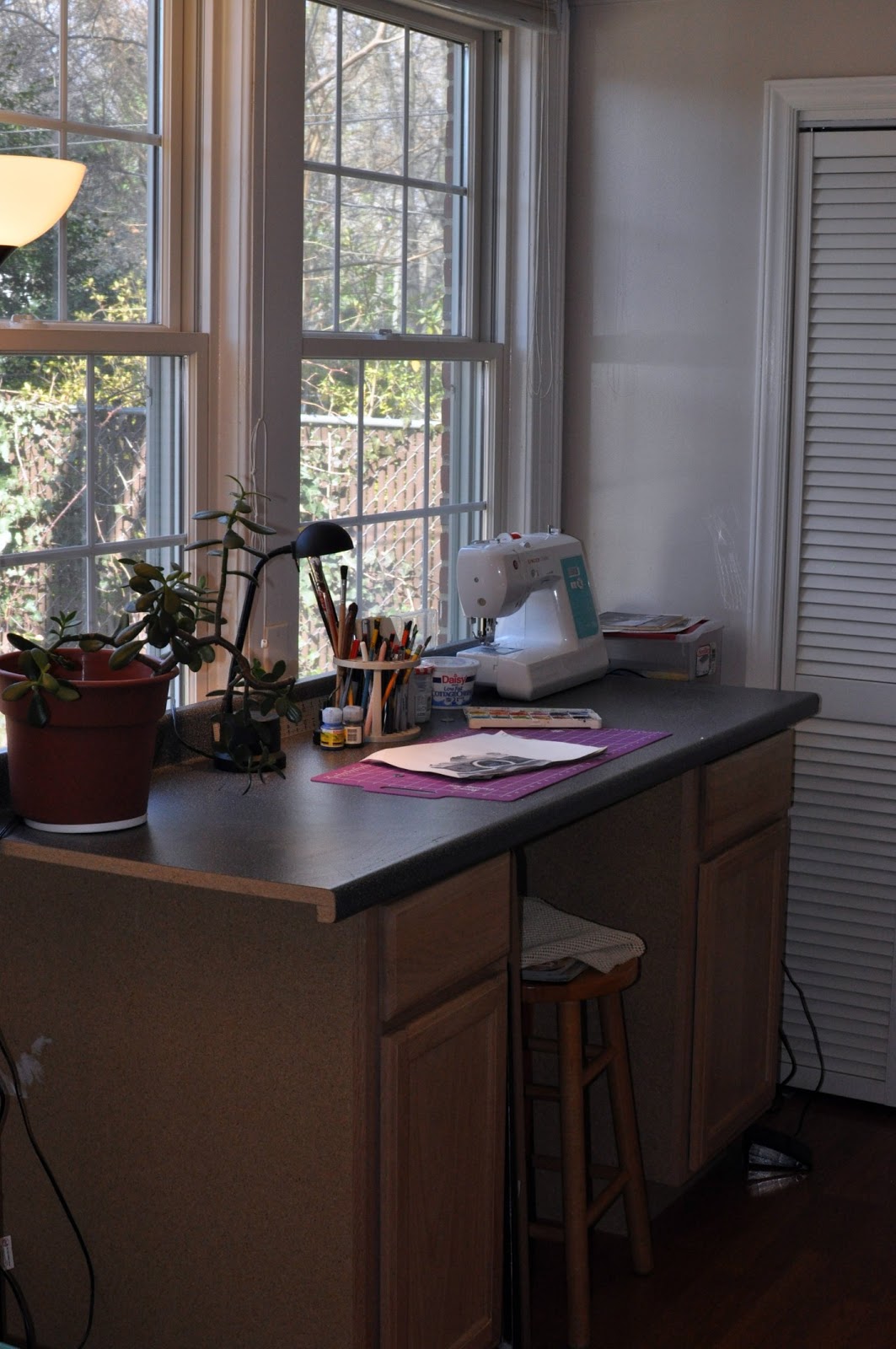It is my art & sewing room. I used the extra counter top from the kitchen remodel and placed it over two plain cabinets as an art table. It is the perfect height to stand or work and roomy enough for my numerous art supplies.
