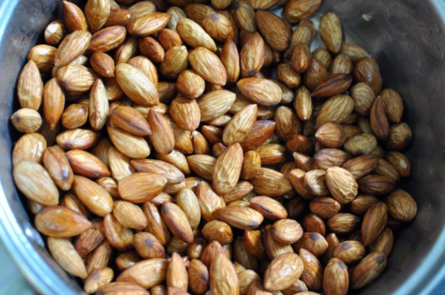 These nuts are crazy! They have a sweet smoky flavor and a crunch and chew that can’t be beat. I am a huge fan – Eric is not. He cannot stand the texture of almonds and I made too many, so if you want any of these nuts, let me know. Read on to find out how to make them yourself.