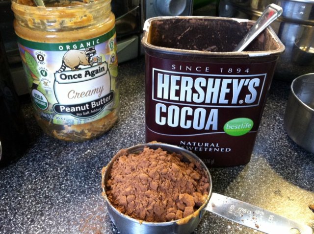 I added ½ cup unsweetened cocoa powder to the flour mix. Be sure to check your peanut butter and almond milk if you want to truly keep this recipe sugar-free. Those are two areas that sugar lurks – read your labels!