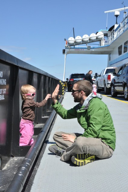 Greta enjoyed running around the ferry, watching seagulls, and watching other people and their dogs. One particular year, my father in law had a cookie stolen out of his hands by a thieving seagull. I guarded my child on the ferry this year and made her eat in the car.