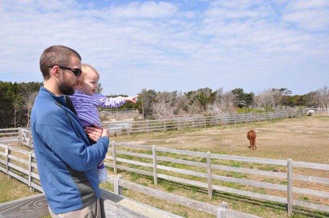 After beach exploring, we headed to see the Ocracoke ponies. Then it was on to the Hatteras ferry, and a nice scenic drive North on Highway 12 to Corolla – a brand new place for us to explore.