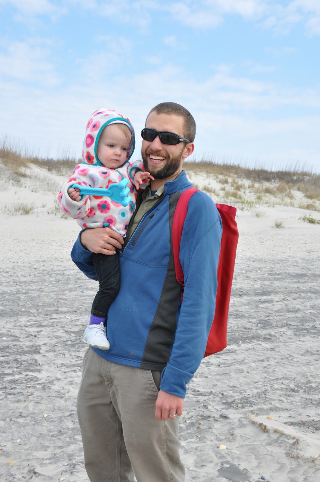 We headed out to the beach next. Greta was so eager to get down to the wa-wa that she was wriggling out of my arms in this photo.