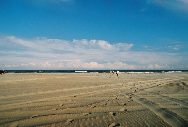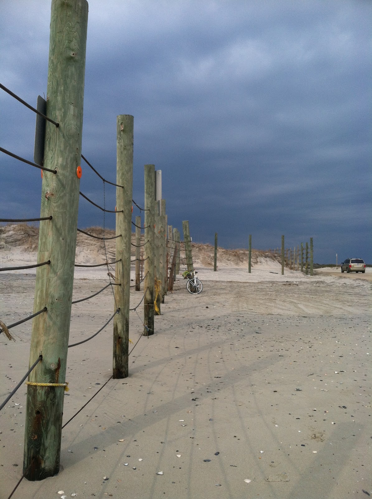 Our mornings were filled with beach trips. This is the end of Highway 12 – a sandy road blocked off with fences to protect the wild horses the roam the area.