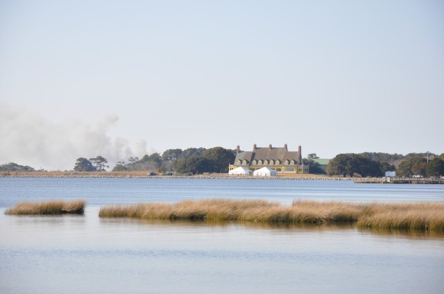 To the right of the pier was this view: the Whale Head Club and still the forest fire.