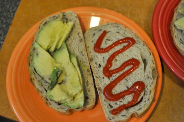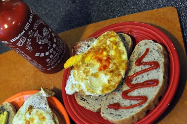 Sandwich #2 – Spicy Avocado Fried Egg. My go-to fried egg sandwich is simple: slice avocado, a swirl of Sriracha, and a fried egg on toasted bread.