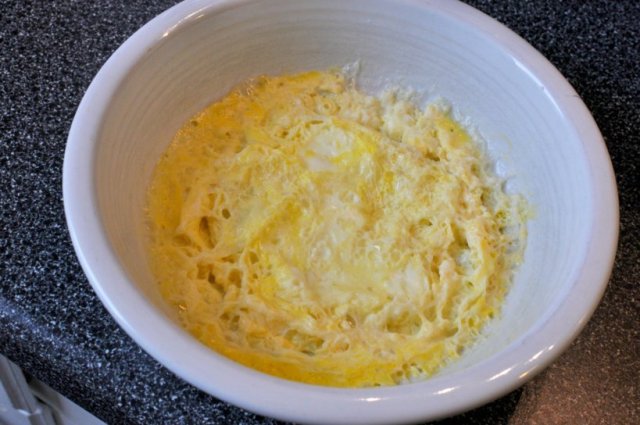 In a pinch, a I will whisk one egg with a bit of almond milk in a bowl. Then, microwave on high for 1:20 or till done. Use a spatula to loosen egg and use in place of pan-cooked egg. The egg can easily be sliced and diced to fit your needs. This method works best for feeding hangry toddlers in the wee hours of the day, too.